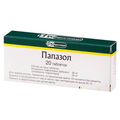 Фармакологическое действие Комбинированный препарат, оказывает спазмолитическое, гипотензивное, вазодилатирующее действие. Бендазол — спазмолитическое средство миотропного действия; оказывает гипотензивное, вазодилатирующее действие, стимулирует функцию спинного мозга, обладает умеренной иммуностимулирующей активностью. Папаверин — спазмолитическое средство, оказывает гипотензивное действие. Ингибирует фосфодиэстеразу, вызывает накопление в клетке цАМФ и снижение содержания кальция, снижает тонус и расслабляет гладкие мышцы внутренних органов (ЖКТ, дыхательной и мочеполовой системы) и сосудов. В больших дозах снижает возбудимость сердечной мышцы и замедляет внутрисердечную проводимость. Действие на ЦНС выражено слабо (в больших дозах оказывает седативный эффект). Лекарственное взаимодействие При одновременном применении препарата со спазмолитиками, седативными лекарственными средствами, диуретиками, трициклическими антидепрессантами, прокаинамидом, резерпином, хинидином возможно усиление выраженности гипотензивного эффекта. Папазол ослабляет действие антихолинэстеразных лекарственных средств на гладкую мускулатуру (галантамин, прозерин, физостигмин). Адсорбенты, вяжущие и обволакивающие лекарственные средства уменьшают всасывание препарата в ЖКТ.
