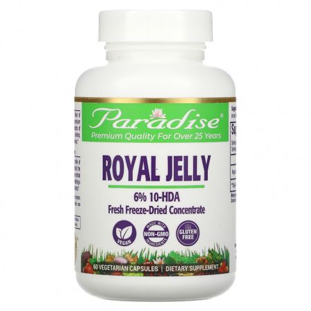 Пищевая ценностьРазмер порции: 1 вегетарианская капсула Количество в 1 порции % от суточной нормыЭкстракт маточного молочка (6% 10-HDA)500 мг**** Суточная норма не определена. Премиальное качество уже более 25 лет6% 10-HDAСвежий сублимированный концентратВеганский продуктИзготовлено из ингредиентов без ГМОБез глютенаПищевая добавкаИмеет регистрацию GMP. Зарегистрировано FDAEnhancing Nature’s Miracles Since 1994Качество, чистота и эффективностьПродукты Paradise получают награды от Best of Supplements Awards как лучшие добавки вот уже более десяти лет. Мы нацелены на поиск сверхчистых ингредиентов премиального качества, которые соответствуют самым высоким стандартам. Мы никогда не добавляем ненужные наполнители, связывающие вещества, консерванты или агенты текучести в наши продукты во время процесса инкапсуляции.Преимущество активных экстрактов полного спектраНаши экстракты содержат полный спектр природных компонентов и извлекаются без использования токсичных растворителей и/или агрессивных химикатов. Этот уникальный метод позволяет выявить истинную сущность растения в целом, сохраняя при этом необходимую концентрацию высокоактивных и биодоступных питательных фитоэлементов.