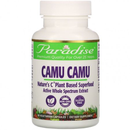 Сведения о добавке Размер порции: 1 вегетарианская капсула Количество порций в упаковке: 60 Состав на вегетарианскую капсулу % от суточной нормы Экстракт органических ягод каму-каму 400 мг ** **Суточная норма не установлена. Премиальное качество вот уже более 25 летСуперфуд на растительной основе от Nature’s C®Активный экстракт полного спектраВеганский продуктИзготовлено из ингредиентов без ГМОБез глютенаПищевая добавкаИмеет регистрацию GMPEnhancing Nature’s Miracles Since 1994Качество, чистота и эффективностьПродукты Paradise получают награды от Best of Supplements Awards как лучшие добавки вот уже более десяти лет. Мы стремимся использовать сверхчистые ингредиенты премиального качества, которые соответствуют самым высоким стандартам. Мы никогда не добавляем ненужные наполнители, связывающие вещества, консерванты или агенты текучести в наши продукты в процессе инкапсуляции.Преимущества активных экстрактов полного спектраНаши активные экстракты содержат полный спектр природных компонентов и извлекаются без использования токсичных растворителей и/или агрессивных химикатов. Данный уникальный метод позволяет выявить истинную сущность растения в целом, сохраняя при этом необходимую концентрацию высокоактивных и биодоступных питательных фитонутриентов.
