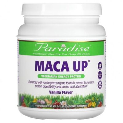 Описание Премиальное качество в течение более 25 летВегетарианский энергетический протеинОбогащен формулой ферментов Aminogen®, которая повышает усвояемость белков и всасывание аминокислот!На 100% веганский продуктБез глютенаИзготовлено из ингредиентов без ГМОПищевая добавкаПроизведено на предприятии, имеющем регистрацию надлежащей производственной практики (GMP). Зарегистрировано Управлением по контролю качества пищевых продуктов и лекарственных средств СШАEnhancing Nature’s Miracles Since 1994Вегетарианский энергетический протеин Paradise Maca Up® — это полноценный веганский гипоаллергенный протеин со сбалансированным аминокислотным составом, полученный из сертифицированного органического коричневого риса и сертифицированного органического гороха. Гороховый протеин легко усваивается и оказывает действие длительного высвобождения, что обеспечивает его превосходную перевариваемость и продолжительное влияние. Мы усовершенствовали нашу формулу, добавив фермент растительного происхождения Aminogen®. Исследования показывают, что Aminogen® увеличивает уровень аминокислот с разветвленной цепью на 250%, уровень аминокислот в плазме более чем на 100%, уровень глутамина на 90%, уровень аргинина на 80% и удержание азота на 32%. Он также способствует увеличению мышечной массы, способствует восстановлению мышц и уменьшает газообразование, вздутие живота и запоры. Paradise Maca Up® также содержит полезные для сердца органические волокна овсяных отрубей Nutrim®. Мака веками использовалась жителями Перу из-за ее удивительной энергии и выносливости. Рекомендации по применению Одна мерная ложка в день. Отлично смешивается с водой, соком, рисовым или миндальным молоком. Ингредиенты Organic pea protein 80%, organic brown rice protein 80%, organic gelatinized maca root powder, organic vanilla flavor, Nutrim® organic oat bran fiber, Aminogen® enzyme formula, organic luo han guo.Contains NO gluten, hemp, soy, dairy, casein, animal products, or common allergens. Предупреждения Этот продукт продается по весу, а не по объему. Хранить в сухом и прохладном месте, недоступном для детей. Перед применением добавок во время беременности, кормления грудью, приема каких-либо лекарств или при наличии каких-либо заболеваний следует проконсультироваться со своим лечащим врачом.Только для жителей штата Калифорния. Предупреждение. Данный продукт содержит химическое вещество, которое, по данным штата Калифорния, может вызвать врожденные аномалии развития или причинить иной вред репродуктивной системе. Произрастая в природных условиях растения поглощают из почвы такие элементы, как свинец, Закон Калифорнии обязывает предупреждать о наличии таких химических веществ как свинец. Этот продукт, как и все продукты Paradise, соответствует всем федеральным нормативным требованиям к безопасности. Пищевая ценностьРазмер порции: 1 мерная ложка без горки (прибл.30 г)Порций в упаковке: 15 Количество в 1 порции% от суточной нормы+Калории110 Калорий из жира15 Всего жиро…