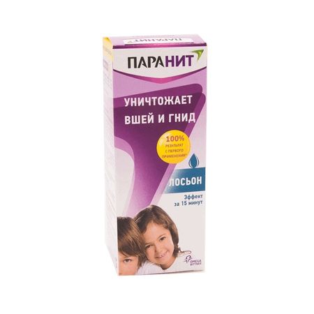 ПАРАНИТ Лосьон — Прозрачная от бесцветного до жёлтого цвета маслянистая жидкость без запахаУничтожает 100% вшей и личинок с первого примененияПаранит Лосьон прошёл исследования, которые подтвердили его эффективность. Паранит Лосьон с формулой двойного действия не только удушает, н и обезвоживает вшей и гнид, тем самым гарантирует результат с первого применения. Паранит Лосьон не содержит инсектицидов нейротоксического действия, поэтому устойчивость к нему у вшей не развивается.Результат: Уничтожает 100% вшей и гнид