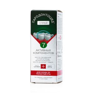 Пародонтоцид спрей для гигиены полости рта, созданный специально для устранения проблем с деснами и зубами. Спрей содержит лечебные компоненты, которые помогают защитить зубы и десны от болезней. Способствуют уменьшению воспаления и кровоточивости десен и защите эмали зубов, не нарушая нормальную микрофлору полости рта. Не содержит хлоргексидин и триклозан. Продукт может использоваться как для профилактики, так и для лечения зубных проблем. Благодаря спрею Пародонтоцид Вы сможете сохранить здоровье своих зубов и десен, а также обеспечить свежесть дыхания на длительное время.7 Активных компонентов — масло шалфея, масло гвоздичное, масло мяты, натрия фторид, фенилсалицилат, масло душицы, тимол. Способствуют уменьшению воспаления и кровоточивости десен и защите эмали зубов, не нарушая нормальную микрофлору полости рта.Не содержит хлоргексидин и триклозан.
