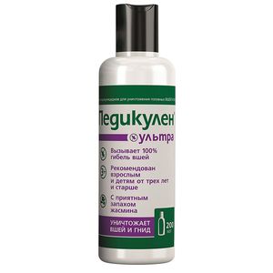 Шампунь педикулен ультра – дезинсекционное средство. 100% уничтожение вшей и их личинок! Вазелиновое масло в составе шампуня обволакивает вшей и гнид, не пропуская к ним кислород, в результате чего насекомые и личинки погибают.