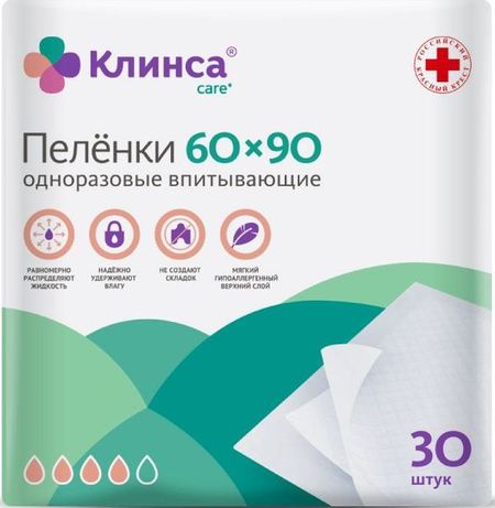 Пеленки КЛИНСА впитывающие для взрослых 60х90 см. 30 шт.