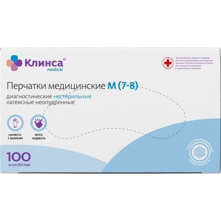 Главная » Аптека Перчатки диагностические латексные неопудренные Клинса 100шт р.M Просмотров 7 Top Glove Sdn Bhd