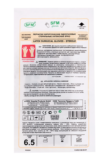Главная » Аптека Перчатки SFM хирург/стерил/латекс/неопудр/без валика S (6.5), пара Просмотров 5 СФМ Госпитал Продактс ГмбХ