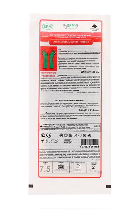 Главная » Аптека Перчатки SFM хирург/стерил/латекс/неопудр/гинекологич зеленые M (7.5), 410 мм, пара Просмотров 15 СФМ Госпитал Продактс ГмбХ
