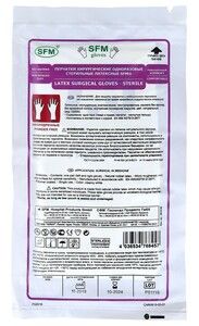 Бренд SFM Hospital Products GmbH, Германия — мировой лидер по разработке, усовершенствованию и производству медицинских изделий.Перчатки хирургические sfm латексные стерильные — для работ в медицинских, хирургических целях.Технические характеристики перчаток:Материал: 100% натуральный латекс.Назначение — хирургические.Анатомические — разделение на правую и левую руки.Манжета стандартная, с валиком.Покрытие: неопудренные, БЕЗ ПУДРЫ — снижает риск возникновения аллергических реакций и кожных раздражений.Стерильные — стерилизация — оксид этилена.Длина перчатки от кончика среднего пальца до валика 280 мм — 300 мм.Одинарная толщина пальца (13мм от кончика): 0.15 ± 0.02мм.Одинарная толщина ладони (центр): 0.13 ± 0.02мм.Одинарная толщина манжеты (25мм от валика): 0.11± 0.02мм.Отделка внешней поверхности: текстурированные, микрошероховатая поверхность по всей площади.Без адгезивной полосы.Внутреннее полимерное покрытие — специализированное внутреннее покрытие, для облегчения надевания перчатки.Коэффициент прочности — AQL — 1,0 (Испытание воздушным насосом).Герметичность: Стандарт G1.Стандарт: ASTM D3578-05 (2015).Вес перчаток: 8.5 ± 0.2гр.Наличие сертификата ISO 13485:2003, 9001:2000.Цвет изделия — натуральный.Срок годности 5 лет.Перчатки стерильные хирургические имеют повышенную длину, что отлично защищает предплечье, а валик предотвращает скатывание перчатки и надежно фиксирует рукав.Перчатки хирургические стерильные имеют текстуру по всей поверхности перчатки, что: обеспечивает надежный захват инструмента и безопасность манипуляций, текстура на тыльной стороне перчатки исключает бликование поверхности.Высокая чувствительность хирургической перчатки обеспечивается микротекстурированной поверхностью, что также облегчает захват.
