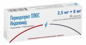 Главная » Аптека Периндоприл ПЛЮС Индапамид Таблетки 2,5 мг + 8 мг 30 шт Просмотров 10 Таблетки круглой, двояковыпуклой формы, покрытые пленочной оболочкой белого или почти белого цвета. ИЗВАРИНО ФАРМА