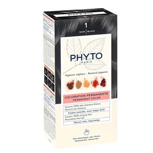 Бренд PHYTOСила природы для красоты волос! Бренд PHYTO разрабатывает формулы из растительных экстрактов, которые тщательно отбирает и проверяет.Линия Phyto Color средства для окрашивания волос чувствительной кожи головы и для ухода за окрашенными волосами.PHYTO КРЕМ-КРАСКА ДЛЯ ВОЛОС ТОН 1 ЧЕРНЫЙВнешний вид: Кремовая текстура, белого цвета (изменяющаяся при контакте с окислителем) с тонким ароматом.Специальные особенности: Без аммиака, без резорцинола, без парабенов, без силиконов.Phyto Permanent color первая крем-краска, разработанная специалистами Фито без аммиака и с использованием растительных пигментов.Формула Phyto Permanent color 1 Noir Чёрный сбалансирована таким образом, чтобы обеспечивать стойкий максимально естественный цвет, сохранить здоровье и сияние локонов, а также проявить заботу, обеспечив комфорт нанесения краски для кожи головы.Фито Крем-Краска содержит до 81% натуральных ингредиентов с высокой переносимостью, обеспечивающих закрашивание 100% седины с первого использования.Высокая концентрация растительных пигментов обеспечивает безукоризненно точное окрашивание (до 81% растительных компонентов в зависимости от оттенка). Красящая основа гарантирует идеальное закрашивание седины и желаемый тон.Растительные пигменты обеспечивают интенсивный цвет, естественный глубокий оттенок и блеск.Два синергичных компонента -масла 100% растительного происхождения восстанавливают красоту волос и насыщают их питательными компонентами.Преимущества: 100% закрашенных седых волос с первого применения, подходит для чувствительной кожи головы, протестировано под дерматологическим контролем, легкий аромат: не содержит аммиака, бархатистая текстура не растекается при нанесении.Результат: Цвет волос яркий и насыщенный, выглядит естественно. Волосы мягкие и блестящие, здоровые и красивые. Седые волосы закрашены.