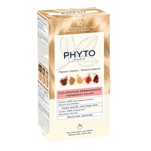 Бренд PHYTOСила природы для красоты волос! Бренд PHYTO разрабатывает формулы из растительных экстрактов, которые тщательно отбирает и проверяет.Линия Phyto Color средства для окрашивания волос чувствительной кожи головы и для ухода за окрашенными волосами.PHYTO КРЕМ-КРАСКА ДЛЯ ВОЛОС ТОН 10 ЭКСТРА-СВЕТЛЫЙ БЛОНДВнешний вид: Кремовая текстура, белого цвета (изменяющаяся при контакте с окислителем) с тонким ароматом.Специальные особенности: Без аммиака, без резорцинола, без парабенов, без силиконов.Phyto Permanent color первая крем-краска, разработанная специалистами Фито без аммиака и с использованием растительных пигментов.Формула Phyto Permanent color 10 Extra Light Blonde Экстра-светлый блонд сбалансирована таким образом, чтобы обеспечивать стойкий максимально естественный цвет, сохранить здоровье и сияние локонов, а также проявить заботу, обеспечив комфорт нанесения краски для кожи головы.Фито Крем-Краска содержит до 81% натуральных ингредиентов с высокой переносимостью, обеспечивающих закрашивание 100% седины с первого использования.Высокая концентрация растительных пигментов обеспечивает безукоризненно точное окрашивание (до 81% растительных компонентов в зависимости от оттенка). Красящая основа гарантирует идеальное закрашивание седины и желаемый тон.Растительные пигменты обеспечивают интенсивный цвет, естественный глубокий оттенок и блеск.Два синергичных компонента -масла 100% растительного происхождения восстанавливают красоту волос и насыщают их питательными компонентами.Преимущества: 100% закрашенных седых волос с первого применения, подходит для чувствительной кожи головы, протестировано под дерматологическим контролем, легкий аромат: не содержит аммиака, бархатистая текстура не растекается при нанесении.Результат: Цвет волос яркий и насыщенный, выглядит естественно. Волосы мягкие и блестящие, здоровые и красивые. Седые волосы закрашены.