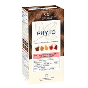 Бренд PHYTOСила природы для красоты волос! Бренд PHYTO разрабатывает формулы из растительных экстрактов, которые тщательно отбирает и проверяет.Линия Phyto Color средства для окрашивания волос чувствительной кожи головы и для ухода за окрашенными волосами.PHYTO КРЕМ-КРАСКА ДЛЯ ВОЛОС ТОН 5.3 СВЕТЛЫЙ ЗОЛОТИСТЫЙ ШАТЕНВнешний вид: Кремовая текстура, белого цвета (изменяющаяся при контакте с окислителем) с тонким ароматом.Специальные особенности: Без аммиака, без резорцинола, без парабенов, без силиконов.Phyto Permanent color первая крем-краска, разработанная специалистами Фито без аммиака и с использованием растительных пигментов.Формула Phyto Permanent color 5.3 Light Golden Brown Светлый золотистый шатен сбалансирована таким образом, чтобы обеспечивать стойкий максимально естественный цвет, сохранить здоровье и сияние локонов, а также проявить заботу, обеспечив комфорт нанесения краски для кожи головы.Фито Крем-Краска содержит до 81% натуральных ингредиентов с высокой переносимостью, обеспечивающих закрашивание 100% седины с первого использования.Высокая концентрация растительных пигментов обеспечивает безукоризненно точное окрашивание (до 81% растительных компонентов в зависимости от оттенка). Красящая основа гарантирует идеальное закрашивание седины и желаемый тон.Растительные пигменты обеспечивают интенсивный цвет, естественный глубокий оттенок и блеск.Два синергичных компонента -масла 100% растительного происхождения восстанавливают красоту волос и насыщают их питательными компонентами.Преимущества: 100% закрашенных седых волос с первого применения, подходит для чувствительной кожи головы, протестировано под дерматологическим контролем, легкий аромат: не содержит аммиака, бархатистая текстура не растекается при нанесении.Результат: Цвет волос яркий и насыщенный, выглядит естественно. Волосы мягкие и блестящие, здоровые и красивые. Седые волосы закрашены.