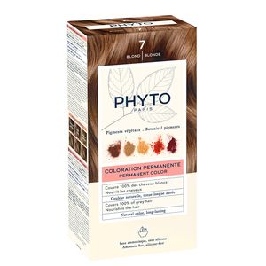 Бренд PHYTOСила природы для красоты волос! Бренд PHYTO разрабатывает формулы из растительных экстрактов, которые тщательно отбирает и проверяет.Линия Phyto Color средства для окрашивания волос чувствительной кожи головы и для ухода за окрашенными волосами.PHYTO КРЕМ-КРАСКА ДЛЯ ВОЛОС ТОН 7 БЛОНДВнешний вид: Кремовая текстура, белого цвета (изменяющаяся при контакте с окислителем) с тонким ароматом.Специальные особенности: Без аммиака, без резорцинола, без парабенов, без силиконов.Phyto Permanent color первая крем-краска, разработанная специалистами Фито без аммиака и с использованием растительных пигментов.Формула Phyto Permanent color 7 Blonde Блонд сбалансирована таким образом, чтобы обеспечивать стойкий максимально естественный цвет, сохранить здоровье и сияние локонов, а также проявить заботу, обеспечив комфорт нанесения краски для кожи головы.Фито Крем-Краска содержит до 81% натуральных ингредиентов с высокой переносимостью, обеспечивающих закрашивание 100% седины с первого использования.Высокая концентрация растительных пигментов обеспечивает безукоризненно точное окрашивание (до 81% растительных компонентов в зависимости от оттенка). Красящая основа гарантирует идеальное закрашивание седины и желаемый тон.Растительные пигменты обеспечивают интенсивный цвет, естественный глубокий оттенок и блеск.Два синергичных компонента -масла 100% растительного происхождения восстанавливают красоту волос и насыщают их питательными компонентами.Преимущества: 100% закрашенных седых волос с первого применения, подходит для чувствительной кожи головы, протестировано под дерматологическим контролем, легкий аромат: не содержит аммиака, бархатистая текстура не растекается при нанесении.Результат: Цвет волос яркий и насыщенный, выглядит естественно. Волосы мягкие и блестящие, здоровые и красивые. Седые волосы закрашены.