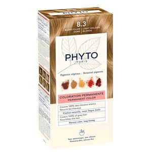 Бренд PHYTOСила природы для красоты волос! Бренд PHYTO разрабатывает формулы из растительных экстрактов, которые тщательно отбирает и проверяет.Линия Phyto Color средства для окрашивания волос чувствительной кожи головы и для ухода за окрашенными волосами.PHYTO КРЕМ-КРАСКА ДЛЯ ВОЛОС ТОН 8.3 СВЕТЛЫЙ ЗОЛОТИСТЫЙ БЛОНДВнешний вид: Кремовая текстура, белого цвета (изменяющаяся при контакте с окислителем) с тонким ароматом.Специальные особенности: Без аммиака, без резорцинола, без парабенов, без силиконов.Phyto Permanent color первая крем-краска, разработанная специалистами Фито без аммиака и с использованием растительных пигментов.Формула Phyto Permanent color 8.3 Light Golden Blonde Светлый золотистый блонд сбалансирована таким образом, чтобы обеспечивать стойкий максимально естественный цвет, сохранить здоровье и сияние локонов, а также проявить заботу, обеспечив комфорт нанесения краски для кожи головы.Фито Крем-Краска содержит до 81% натуральных ингредиентов с высокой переносимостью, обеспечивающих закрашивание 100% седины с первого использования.Высокая концентрация растительных пигментов обеспечивает безукоризненно точное окрашивание (до 81% растительных компонентов в зависимости от оттенка). Красящая основа гарантирует идеальное закрашивание седины и желаемый тон.Растительные пигменты обеспечивают интенсивный цвет, естественный глубокий оттенок и блеск.Два синергичных компонента -масла 100% растительного происхождения восстанавливают красоту волос и насыщают их питательными компонентами.Преимущества: 100% закрашенных седых волос с первого применения, подходит для чувствительной кожи головы, протестировано под дерматологическим контролем, легкий аромат: не содержит аммиака, бархатистая текстура не растекается при нанесении.Результат: Цвет волос яркий и насыщенный, выглядит естественно. Волосы мягкие и блестящие, здоровые и красивые. Седые волосы закрашены.