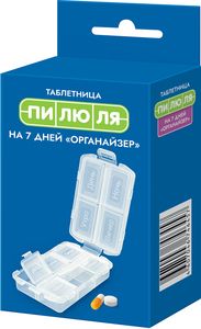 Организует прием лекарств и витаминов! Все по плану! Из безопасного, легко моющегося пластика Удобная и простая в использовании Очень компактная (помещается в дамскую сумку) Зарегистрированное медицинское изделиеО таблетницеТаблетницы предназначены для компактного и упорядоченного хранения лекарственных средств или витаминов.Состоит из 2-х блоков. Первый блок содержит 6 пронумерованных отделений, в каждое из которых помещается ежедневная доза необходимых лекарств или витаминов. Второй блок состоит из 4-х отделений, для распределения лекарственных средств или витаминов в соответствии с суточным режимом приема: утро, день, вечер, ночь.Характеристики Размер таблетницы без упаковки (Д:Ш:Г): 96х64х30 мм Количество отделений: 10 Производитель: ООО «Альпина Пласт», Россия Вес: 40 гр