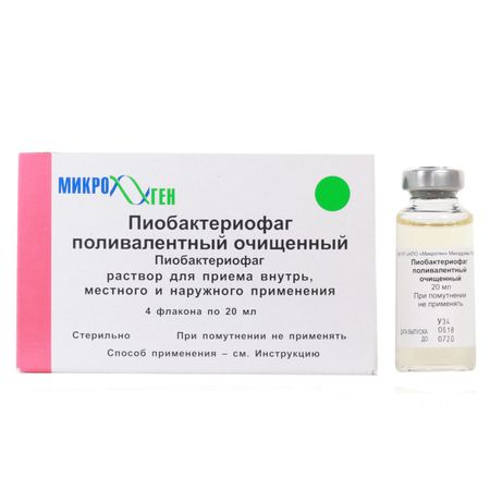 Главная » Аптека Пиобактериофаг поливалентный жидкий р-р для наруж.прим. 20мл №4 Просмотров 3 Микроген НПО АО