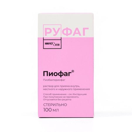 Прозрачная жидкость желтого цвета различной интенсивности, возможен зеленоватый оттенок. Показания Лечение и профилактика гнойно-воспалительных и кишечных заболеваний, вызванных стафилококками, энтерококками, стрептококками, синегнойной палочкой, клебсиеллами, патогенной кишечной палочкой различных серогрупп, протеем при внутреннем, ректальном и наружном применении: — заболевания уха, горла, носа, дыхательных путей и легких — воспаления пазух носа, среднего уха, ангина, фарингит, ларингит, трахеит, бронхит, пневмония, плеврит; — хирургические инфекции — нагноения ран, ожоги, абсцесс, флегмона, фурункулы, карбункулы, гидроаденит, панариции, парапроктит, мастит, бурсит, остеомиелит; — урогенитальные инфекции — уретрит, цистит, пиелонефрит, кольпит, эндометрит, сальпингоофорит; — посттравматические конъюнктивиты, кератоконъюнктивиты, гнойные язвы роговицы и иридоциклиты; — энтеральные инфекции — гастроэнтероколит, холецистит, дисбактериоз; — генерализованные септические заболевания; -гнойно-воспалительные заболевания новорожденных — омфалит, пиодермия, конъюнктивит, гастроэнтероколит, сепсис и др.; — другие заболевания, вызванные бактериями стафилококков, стрептококков, энтерококков, протея, клебсиелл пневмонии и окситока, синегнойной и кишечной палочек. С профилактической целью препарат используют для обработки операционных и свежеинфицированных ран, а также для профилактики внутрибольничных инфекций по эпидемическим показаниям.