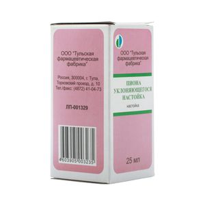 Главная » Аптека Пиона Настойка 25 мл Просмотров 4 Прозрачная жидкость светло-коричневого цвета со специфическим запахом. В процессе хранения возможно выпадение осадка. Тульская ФФ