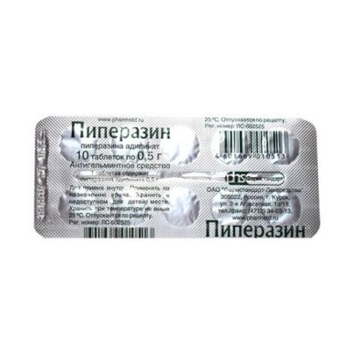 Показания Аскаридоз, энтеробиоз. Фармакологическое действие Противогельминтное средство. Оказывает парализующее действие на нематоды, нарушая функцию их нервно-мышечной системы, вызывает паралич мускулатуры. Лекарственное взаимодействие Пиперазина адипат усиливает выраженность экстрапирамидных нарушений, вызываемых хлорпромазином.