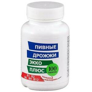 Биологически активная добавка (БАД) к пище восполняющая дефицит витаминов группы B, восполняющая дефицит макро- и микроэлементов, восполняющая дефицит белков.Одно из самых ценных свойств пивных дрожжей – их способность снижать уровень сахара в крови. Дело в том, что в составе пивных дрожжей содержится значительная доля очень важного микроэлемента – хрома, известного своей способностью снижать уровень сахара в крови и повышать толерантность к глюкозе. Это удивительное свойство хрома подтверждено многочисленными исследованиями, в том числе с участием пациентов с сахарным диабетом 1 и 2 типов. Поэтому сегодня медики рекомендуют натуральные пивные дрожжи всем пациентам с сахарным диабетом. А пожилым людям — особенно, ведь с возрастом содержание хрома в организме неуклонно снижается. Пивные дрожжи Экко Плюс — оптимальный способ получать хром, не прибегая к лекарственным препаратам.Пивные дрожжи Экко Плюс будут очень полезны при диабете и по другой причине. Они содержат все самые важные витамины группы В, которые способствуют проведению нервных импульсов, помогая предотвратить диабетическую полинейропатию.Ежедневное добавление в рацион питания пивных дрожжей оказывает заметное благотворное влияние на внешний вид — улучшается состояние кожи, волос и ногтей: уменьшается сухость кожи и количество воспалений на ней, сокращаются поры, заживают трещинки в уголках рта, кожа приобретает здоровый вид ускоряется рост ногтей, уменьшается их ломкость и расслоение слабые волосы восстанавливают свою силу и блеск. Особенно важно поддерживать здоровье волос зимой, когда они становятся сухими, электризуются и не держат объем. Пивные дрожжи очень хорошо справляются с хронической усталостью, сонливостью, раздражительностью, апатией, расстройствами внимания и памяти. А все потому, что являются натуральным источником всего набора витаминов группы В, регулирующих работу нервной системы человека.В нашем традиционном рационе содержание витаминов В-группы очень низкое, а термическая обработка пищи еще больше сокращает их присутствие. Вот почему очень важно получать витамины В в виде добавки к пище. Пивные дрожжи хороши тем, что обеспечивают поступление сразу всех важнейших витаминов группы В. Известно, что одновременное действие витаминов группы В гораздо более результативно и эффективно, чем каждого по отдельности.