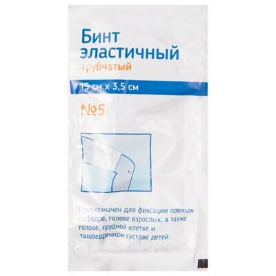 Трубчатый бинт №5 используют для фиксации повязок. Бинты обладают хорошей эластичностью, поэтому растягиваются до нужных размеров и надежно обхватывают место перевязки. Индивидуальная упаковка бинтов изготавливается из пленки ПВХ и содержит маркировку на каждой штуке, упаковка водостойка и защищает бинты от повреждений при транспортировке и хранении.