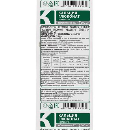 Показания Гипокальциемия различного генеза, гипопаратиреоз, паренхиматозный гепатит, токсические поражения печени, нефрит, эклампсия, гиперкалиемическая форма пароксизмальной миоплегии, воспалительные и экссудативные процессы, кожные заболевания. Как дополнительное средство при лечении аллергических заболеваний и лекарственной аллергии. Как дополнительное гемостатическое средство при легочных, желудочно-кишечных, носовых, маточных кровотечениях. Повышенная потребность в кальции (беременность, период лактации, период усиленного роста организма), недостаточное содержание кальция в пище, нарушение его обмена (в постменопаузном периоде). Как антидот при отравлениях солями магния, щавелевой кислотой и ее растворимыми солями. Фармакологическое действие Кальций — макроэлемент, участвующий в формировании костной ткани, процессе свертывания крови, необходим для поддержания стабильной сердечной деятельности, процессов передачи нервных импульсов. Улучшает сокращение мышц при мышечной дистрофии, миастении, уменьшает проницаемость сосудов. При в/в введении кальций вызывает возбуждение симпатической нервной системы и усиление выделения надпочечниками адреналина; оказывает умеренное диуретическое действие. Лекарственное взаимодействие Кальция глюконат при одновременном применении уменьшает действие блокаторов кальциевых каналов. В/в введение кальция глюконата до или после верапамила уменьшает его гипотензивное действие, но не влияет на его антиаритмический эффект. Под влиянием колестирамина абсорбция кальция из ЖКТ снижается. При одновременном применении с хинидином возможно замедление внутрижелудочковой проводимости и повышение токсичности хинидина. Во время лечения сердечными гликозидами парентеральное применение кальция глюконата не рекомендуется, в связи с усилением кардиотоксического действия. При одновременном пероральном применении кальция глюконата и тетрациклинов действие последних может уменьшаться, в связи с уменьшением их всасывания.