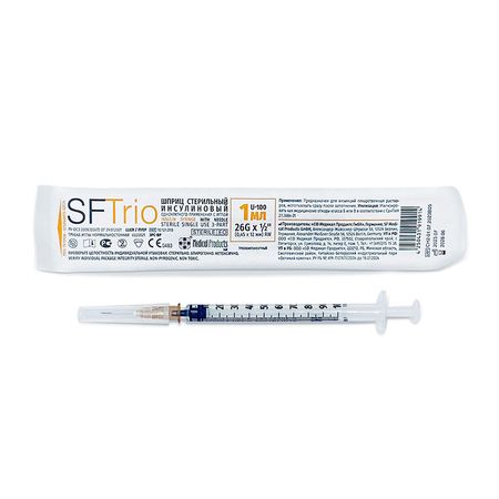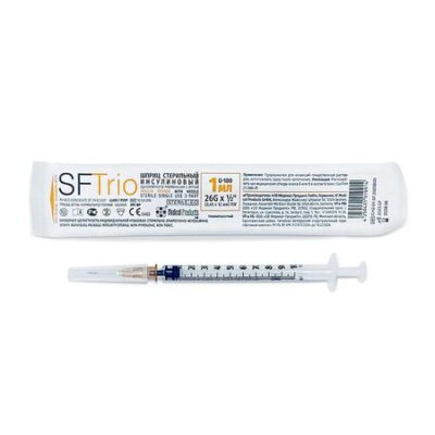 Шприцы стерильные инсулиновые однократного применения объемом 1 мл с иглами предназначены для введения инъекционных лекарственных средств в организм человека.
