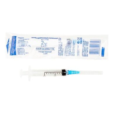 Шприц стерильный трехкомпонентный с резиновой уплотнительной манжетой на поршне. Индивидуальная упаковка шприца – полибэг. Шприц стерилизован оксидом этилена. Однократного использования. Градуировка универсальная, черного цвета, несмываемая.