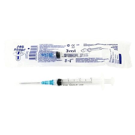 Шприц стерильный трехкомпонентный с резиновой уплотнительной манжетой на поршне. Индивидуальная упаковка шприца – полибэг. Шприц стерилизован оксидом этилена. Срок годности 5 лет. Однократного использования. Градуировка универсальная, черного цвета, несмываемая. Луер Слип Используется для введения лекарства / вакцины внутримышечно или подкожно в организм человека