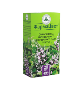 Показания к применениюОтеки, возникающие вследствие нарушения функции почек,хроническая сердечная недостаточность.Применение при беременности и кормлении грудьюПрименение при беременности и в период грудного вскармливания возможно, еслиожидаемая польза для матери превышает потенциальный риск для плода и ребенка.Необходимо проконсультироваться с врачом.ПротивопоказанияПовышенная чувствительность к препарату, детский возраст до 12 лет.Побочное действиеВозможны аллергические реакции.СоставОртосифона тычиночного (почечного чая) листья
