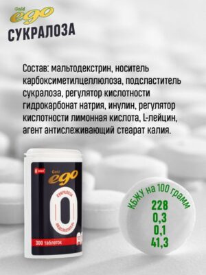 Главная » Аптека Подсластитель Ego Сукралоза сахарозаменитель без лактозы 300 таблеток Просмотров 15 Формула жизни ООО