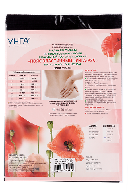 Пояс УНГА-РУС эластичный мед р 2, (С-325) черн