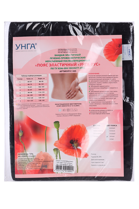 Пояс УНГА-РУС эластичный мед р 5, (С-325) черн