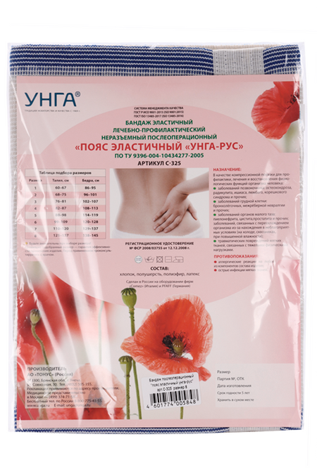Пояс УНГА-РУС эластичный мед р 8, (С-325)