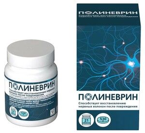 Полиневрин — Биологически активная добавка (БАД) к пище — способствует восстановлению нервных волокон после повреждения.Суточная доза (1 таблетка) содержит: витамин В1 — 4 мг* витамин В6 — 5 мг* витамин В9 — 0,4 мг* витамин В12 — 0,004 мг* холин — 60 мг уридин-5-монофосфат динатриевая соль — 150 мг* — не превышает верхний допустимый уровень потребления, установленный согласно «Единым санитарно-эпидемиологическим и гигиеническим требованиям к товарам, подлежащим санитарно-эпидемиологическому надзору (контролю)» (Глава II, раздел 1, Приложение 5.Пищевая ценность 100 грамм продукта: белки — 0, жиры — 0, углеводы — 1 г.Энергетическая ценность 100 грамм продукта: 15 кДж / 4 ккал.Недостаток витаминов группы В, холина, производных нуклеотидов, в том числе уридин-5-монофосфата, приводит к формированию неврологических расстройств, в частности — к заболеваниям периферических нервов (нейропатии) вследствие недостаточного энергообеспечения нервных клеток, повреждения нервных клеток и нервных волокон в результате окислительного стресса, нарушения обмена нейромедиаторов и процесса синаптической передачи. Кроме того, недостаток в организме холина, витаминов B9 и B12 приводит к накоплению гомоцистеина, повышающего риск развития атеросклероза, кардиоваскулярной и цереброваскулярной патологии. Применение витаминов группы В в комплексе способствует поддержанию работы головного мозга, способствует уменьшению влияния стресса, приводит к увеличению концентрации нейротрофического фактора BDNF, отвечающего за рост и развитие нервных волокон. Совместный прием уридин-5-монофосфата с витаминами группы В (особенно B12, B6, В9) способствует снижению выраженности и распространенности болевого синдрома, уменьшает выраженность парестезии (ощущение жжения, покалывания) и ускоряет реабилитацию пациентов с поли- нейропатией, за счет положительного влияния на восстановление нервных волокон.Полиневрин содержит 4 водорастворимых витамина группы В (В1, В6, В9, В12), холин и уридин-5-монофосфат. Качественно- количественный состав витаминного комплекса Полиневрин специально разработан для применения при заболеваниях нервной системы, таких как заболевания периферических нервов, при которых особенно важна нормализация энергетических процессов в нервной ткани, защита мембран нервных клеток и волокон от повреждений.Активные ингредиенты:Витамин В1 (Тиамина гидрохлорид) в составе витаминного комплекса Полиневрин оказывает влияние на процессы восстановления мембран нервных клеток, регулирует проведение сигналов по нервным волокнам, а также участвует в обеспечении энергетических процессов в нервных клетках. Витамин В1 участвует в формировании синапсов (связей между нейронами), росте аксонов, процессах миелинизации. Он играет роль в синтезе нейромедиаторов, в частности ацетилхолина и ГАМК, а также является антиоксидантом.Витамин В1 в комбинации с витамином В6 и В12 способствует снижению выраженности боли при периферических нейропатиях различной этиологии.Витамин В6 (Пиридоксина гидрохлорид) в составе витаминного комплекса Полиневрин обладает антиоксидант- ным и нейропротективным действиями, защищая нервные волокна от повреждения, а также способствует выработке энергии в нейронах, улучшает утилизацию глюкозы. Витамин В6 способствует увеличению работоспособности, рост