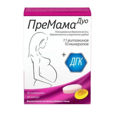 Препарат Премама дуо — биологически активная добавка (БАД) к пище — представляет собой комбинированный комплекс, содержащий 30 таблеток, массой 1260 мг и 30 капсул массой 660 мг. Этот средство специально разработано для удовлетворения потребностей организма беременных женщин. Оно предназначено для поддержки здоровья матери и развития здорового ребенка, при этом не содержит вредных для здоровья компонентов. Премама дуо гарантирует правильное формирование костей, зубов, мышц и нервной системы ребенка, а также помогает беременной женщине чувствовать себя более комфортно в течение всего периода беременности. Каждая таблетка и капсула содержат оптимальное соотношение витаминов, минералов и других питательных веществ, необходимых для здоровья и развития будущего малыша и матери.