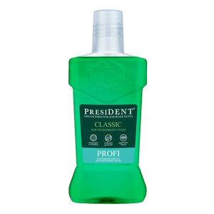 PresiDent Classic Свежесть трав ополаскивательРекомендуется после хирургических вмешательств, установки имплантов и профессиональной чистки у стоматолога, а также при использовании протезов, ортодонтических конструкций и при наличии коронок. Объем бутылочки равен 250 мл и достаточен для длительного использования. Проникает в самые труднодоступные участки. Обеспечивает тщательную обработку зубов и конструкций в полости рта.Освежает полость рта и служит дополнительной профилактикой кариесаОполаскиватель имеет ярко выраженный мятный вкус, прекрасно освежает полость рта и служит дополнительной профилактикой кариеса.Активные компоненты: Фториды — укрепляют эмаль Ксилитол — подавляет рост бактерий Ромашка и шалфей — уменьшают воспаления.Не содержит спирт и SLS.Подходит для использования в ирригаторе.Массовая доля фторида F¯=230 ppm