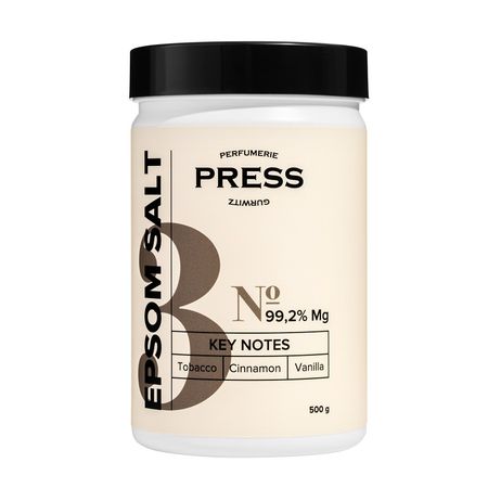 Соль для ванны PRESS GURWITZ PERFUMERIE №3 парфюмированная, является натуральным источником магния 99,9%.Epsom расслабляет и снимает боли в мышцах,помогает в борьбе от целлюлита,при детокс процедурах,насыщает организм магнием,помогает от отёков.Магнезия способствует выведению токсинов из организма,что хорошо влияет на коррекцию фигуры.При приеме ванн отлично подходит для похудения,расслабления,борется со стрессом,следами усталости,выводит лишнюю воду из организма,снимает воспаления на коже,восполняет дефицит магния в организме.Способствует улучшению сна.Соль эпсом обеспечивает комплексный уход за кожей,ногами и руками,волосами,а также за ногтями. Восхитительный парфюмированный аромат Табака,Ванили и Корицы, который остается с вами надолго.Средство можно использовать как скраб для кожи,ванну для ног,маску для ногтей и даже обертывание.Частички соли мягко отшелушивают кожу снаружи,а магний очищает организм изнутри.Рекомендуем проводить процедуры 2-3 раза в неделю,курсом 10-15 процедур.В коллекции используются селективные авторские ароматы, разработанные в парфюмерных домах Франции. Все ароматы унисекс.