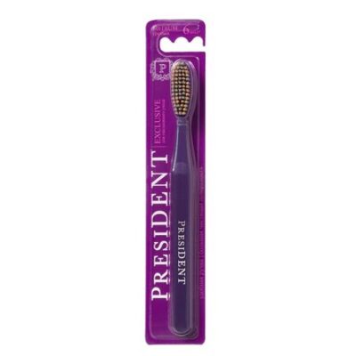 Инновационные разработки и богатый опыт ведущих итальянских и российских специалистов PRESIDENT воплотились в комплексном подходе к гигиене полости рта и системе контроля жесткости щетины. МИЛ – показатель соотношения диаметра щетины и жесткости зубной щетки. Чем больше диаметр щетины, тем больше жесткость зубной щетки. Зубная щётка PRESIDENT Exclusive Средняя 6 МИЛ подходит для тех, кому чистка зубов в удовольствие, для качественного ежедневного ухода. • Большая головка обеспечивает быстрое очищение внешних, внутренних и жевательных участков зубного ряда. • Закругленные щетинки деликатно полируют зубную эмаль и не травмируют десны. • Специально подобранная жесткость щетины 6 МИЛ позволяет эффективно удалять налет, а также предотвращает образование зубного камня. • Удобная, эргономичная ручка Состав: Щетина – нейлон, ручка – PP. Рекомендованное время чистки зубов: 2-3 минуты. Рекомендации по уходу за зубной щеткой: после применения промыть зубную щётку водой. Хранить в вертикальном положении, рабочей частью вверх. Стоматологи рекомендуют менять щетку раз в два месяца и каждый раз после перенесенных инфекций полости рта и дыхательных путей