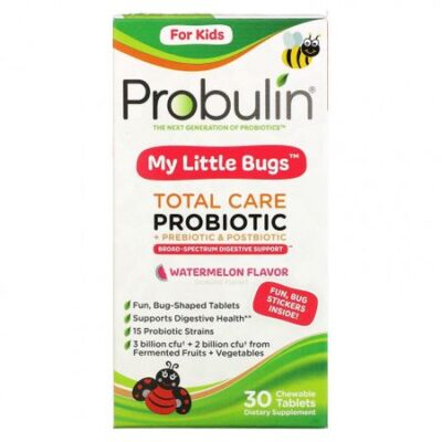 The Next Generation of Probiotics™Поддержка пищеварения широкого спектраНатуральный ароматизаторВеселые таблетки в форме жучковСпособствует улучшению пищеварения15 штаммов пробиотиков3 млрд КОЕ† + 2 млрд КОЕ† из ферментированных фруктов и овощейПищевая добавкаMAKTrek® 3-D «Seaweed Submarine»Не содержит ГМОНе содержит глютенаНе содержит пшеницыНе содержит молочных продуктовНе содержит стеарата магния Не содержит соиПребиотик — пробиотик Probulin’s® Total Care, который содержит наш пребиотик, действующий как пища для пробиотических бактерий.