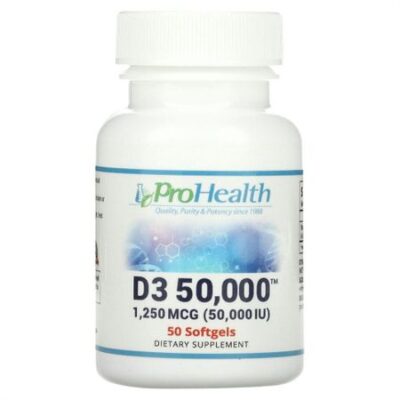 Главная » Аптека ProHealth Longevity, Витамин D3 50 000, 1250 мкг (50 000 МЕ), 50 мягких таблеток Просмотров 6 ProHealth Longevity
