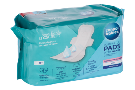 Прокладки Canpol п/родовые с крылышками ночные, 8 шт