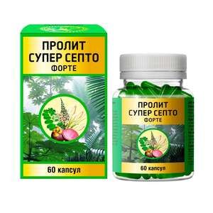 Биологически активная добавка к пище – источник флавоноидов и полифенольных соединений.Способствует улучшению функционального состояния мочевыводящей системы, нормализации микрофлоры мочевыводящих путей, оказывает мягкое мочегонное действие.БАД к пище «Пролит Супер Септо Форте» получила Экспертное заключение об эффективности применения в ФГБОУ«Ярославский государственный медицинский университет» Министерства здравоохранения Российской Федерации.Активные компонентыОртосифон тычиночный является сильным природным диуретиком. Мочегонный эффект сопровождается усиленным выделением из организма мочевины, мочевой кислоты и хлоридов. Повышает клубочковую фильтрацию, улучшает функцию канальцев. Эффективен в условиях длительного применения при острых и хронических заболеваниях почек, сопровождающихся отеками, альбуминурией, азотемией и образованием почечных камней.Осот огородный обладает противовоспалительным, мочегонным и тонизирующим действием. Эффективен при воспалительных процессах органов мочевыделительной системы.Шелковочашечник курчавый (Кеджибелинг) эффективно используется для растворения, профилактики возникновения и выведения конкрементов из мочевых путей. Обладает мочегонным, противовоспалительным и спазмолитическим действием. Предупреждает возникновение и купирует приступы почечной колики. Содержит вещества, ускоряющие эпителизацию поврежденной слизистой оболочки мочевыводящих путей и способствующие ее быстрому восстановлению. Обладает выраженным антиоксидантным и иммуностимулирующим действием.Филлантус нирури способствует растворению конкрементов в почках, обладает выраженным антибактериальным действием, дезинфицирует мочеполовые пути, оказывает спазмолитическое действие.Альпиния лекарственная обладает сильным противовоспалительным, обезболивающим и антиоксидантным действием. Противовоспалительный эффект альпинии обусловлен ингибированием выработки окиси азота (NО) в активных макрофагах.Императа цилиндрическая обладает мочегонным и кровоостанавливающим действием. Применяется при воспалительных заболеваниях мочевого пузыря и мочеиспускательного канала, хроническом гепатите, почечных и сердечных отеках.Софора японская обладает антиоксидантным, противовоспалительным, противоотечным, кровоостанавливающим, ангиопротекторным действием. Основными биологически активными веществами софоры японской являются флавоноиды, которые в большей степени представлены рутином. Фармакодинамические свойства софоры японской связаны с участием биофлавоноидов (в частности, рутина) в окислительно-восстановительных процессах и ингибировании гиалуронидазы. Ингибируя гиалуронидазу, рутин стабилизирует гиалуроновую кислоту клеточных оболочек и уменьшает проницаемость и ломкость капилляров, повышает их тонус.Виноградные косточки являются источником витаминов А, C, B1, B2, B5, B6, B9, E, P, PР, а также содержат калий, кальций, магний, фосфор, серу, хлор, кремний, марганец, железо, медь, цинк, йод, полиненасыщенные жирные кислоты. Экстракт виноградных косточек обладает противовоспалительным, антитромботическим, антиоксидантным свойством, венотонизирующим действием, способен защищать от заболеваний сердца, клетки головного мозга – от повреждения свободными радикалами и улучшать общ