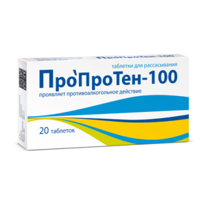 Таблетки плоскоцилиндрической формы, с риской и фаской, от белого до почти белого цвета. На плоской стороне с риской нанесена надпись MATERIA MEDICA, на другой плоской стороне нанесена надпись PROPROTEN 100.