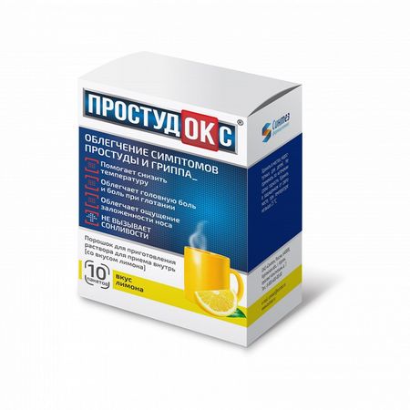 Порошок для приготовления раствора для приема внутрь [со вкусом лимона] от белого или белого с желтоватым оттенком до светло-желтого или светло-коричневого цвета, с запахом лимона, склонный к комкованию; допускается наличие белых, желтых или коричневых включений; восстановленный раствор — от бесцветного или светло-желтого до желтого или светло-коричневого цвета, опалесцирующий раствор с запахом лимона. Показания Данные по фармакокинетике препарата не предоставлены. Фармакологическое действие Комбинированный препарат, действие которого обусловлено входящими в его состав компонентами (НПВП парацетамол, альфа-адреномиметик фенилэфрин и витамин С). Оказывает жаропонижающее, анальгезирующее (обезболивающее), сосудосуживающее действие, устраняет симптомы простуды. Суживает сосуды носа, устраняет отек слизистой оболочки полости носа и носоглотки, восполняет дефицит витамина С при простудных заболеваниях. Начало действия — 20-30 мин после приема, длительность — 4-4.5 ч. Лекарственное взаимодействие Стимуляторы микросомального окисления в печени (фенитоин, этанол, барбитураты, рифампицин, фенилбутазон, трициклические антидепрессанты) увеличивают продукцию гидроксилированных активных метаболитов парацетамола, что обусловливает возможность развития тяжелых интоксикаций при небольших передозировках. Ингибиторы микросомального окисления (циметидин) снижают риск гепатотоксического действия препарата. Парацетамол усиливает эффекты ингибиторов МАО, седативных лекарственных средств, этанола. Этанол способствует развитию острого панкреатита. Антидепрессанты, противопаркинсонические, антипсихотические лекарственные средства, производные фенотиазина увеличивают риск задержки мочи, сухости во рту, запора. ГКС увеличивают риск развития глаукомы. Фенилэфрин снижает гипотензивный эффект гуанетидина. Гуанетидин усиливает альфа-адреностимулирующий эффект, а трициклические антидепрессанты – симпатомиметический эффекты фенилэфрина. Препарат снижает эффективность урикозурических лекарственных средств. При замедлении опорожнения желудка (пропантелин) может иметь место замедленное наступление действия препарата. При ускорении опорожнения желудка (метоклопрамид) препарат начинает действовать быстрее. Препарат может усиливать действие непрямых антикоагулянтов.