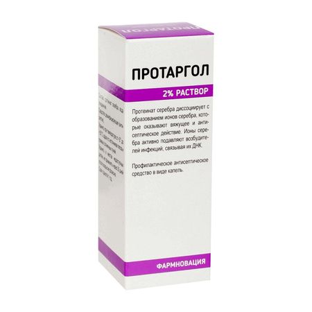 Фармакодинамика При попадании в организм протеинат серебра диссоциирует с образованием ионов серебра, которые оказывают вяжущее, антисептическое и противовоспалительное действие. Ионы серебра активно подавляют размножение возбудителей инфекции, связывая их ДНК. Механизм действия основан на том, что ионы серебра на поврежденной слизистой оболочке осаждают белки и образуют защитную пленку. При этом снижается чувствительность, суживаются кровеносные сосуды (это приводит к уменьшению отека) и подавляется воспалительный процесс. Ионы серебра также подавляют размножение различных бактерий. Активен в отношении грамположительных и грамотрицательных бактерий: В.сегеш, С.albicans, E.coli, Р.aeruginosa. С.aureus, A.niger, S.abony и др.ФармакокинетикаПри местном применении практически не абсорбируется. Побочные действия -Аллергические реакции: кожный зуд, раздражение слизистой, крапивница; -ощущение жжения и онемения; -сухость во рту; -покраснение глаз; -анафилактический шок; -отек Квинке; -атопический дерматит. При усугублении любых из указанных в инструкции побочных эффектов препарат следует отменить. Если любые из указанных в инструкции побочных эффектов усугубляются ши Вы заметили любые другие побочные эффекты, не указанные в инструкции, сообщите об этом врачу.Особенности продажиОтпускается без рецептаОсобые условия храненияГотовый раствор хранить не более 30 дней в защищенном от света месте при температуре не выше 25°С.Особые условияВозможно окрашивание отделяемого из носа в серый или синий цвет. Внимательно прочтите инструкцию по применению перед тем, как начать использование препарата. Сохраните инструкцию, она может понадобиться вновь. Если у Вас возникли вопросы, обратитесь к врачу. Лекарственное средство, которым Вы лечитесь, предназначено лично Вам, и его не следует передавать другим лицам, поскольку оно может причинить им вред далее при наличии тех же симптомов, что и у Вас. Влияние лекарственного препарата на способность управлять транспортными средствами, механизмами Препарат не влияет на способность управлять транспортными средствами или заниматься другими потенциально опасными видами деятельности, требующими повышенной концентрации внимания и быстроты психомоторных реакций. Показания Симптоматическая терапия острого назофарингита (насморка), синусита.