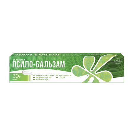 Показания солнечные ожоги и ожоги I степени; укусы насекомых; крапивница; кожный зуд различного генеза; зудящая экзема; ветряная оспа; аллергические раздражения кожи (за исключением зуда при холестазе); контактные дерматиты, вызванные соприкосновением с растениями. Фармакологическое действие Противоаллергическое средство, блокатор гистаминовых H1-рецепторов. Обладает выраженной антигистаминной активностью, уменьшает повышенную проницаемость капилляров, отек тканей и гиперемию. Оказывает местное анестезирующее действие. Дифенгидрамин оказывает выраженное противоаллергическое действие, быстро уменьшает зуд. Псило-Бальзам обладает охлаждающим действием. Специальная гелевая основа защищает кожу и не оставляет видимого следа. Лекарственное взаимодействие Данные о лекарственном взаимодействии препарата Псило-Бальзам не предоставлены.