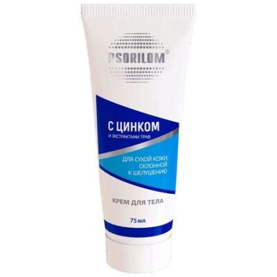 ПСОРИЛОМ КРЕМ ДЛЯ ТЕЛА С ЦИНКОМ И ЭКСТРАКТАМИ ТРАВВнешний вид: однородная масса от светло-серого до бежевого цвета с приятным растительным запахомСпециальные особенности: Не содержит гормонов, красителей и отдушекОписание и свойства: Смягчающий и увлажняющий крем для сухой, чувствительной кожи лица и тела, склонной к зуду и шелушению.Действенная формула активных веществ мгновенно проникает в глубокие слои эпидермиса, интенсивно увлажняя и одновременно успокаивая склонную к раздражению кожу.Без «синдрома отмены» и без привыканияАктивные компонентыПиритион цинка:• Устраняет сухость и шелушение кожи,• Уменьшает зуд, раздражение и жжение,• Ускоряет процесс заживления• Увлажняет и смягчает кожуГуминовые кислоты:• Обладают антиоксидантными свойствами,• Усиливают восстановление клеток кожиНатуральные экстракты и витамины:• Усиливают действие активных компонентов,• Обеспечивают дополнительное питание и мягкий уход за кожейРезультат: Быстро впитывается, дает длительный и стабильный эффект
