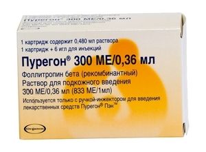 Показания к применениюЛечение женского бесплодия в следующих случаях: ановуляция (включая синдром поликистоза яичников /СПКЯ/) у женщин, нечувствительных к лечению кломифеном; индукция суперовуляции; для индукции множественного развития фолликулов при проведении искусственного оплодотворения (например, в методиках ЭКО/ПЭ, ВМИ и ИКСИ).Применение при беременности и кормлении грудьюПрименение препарата Пурегон при беременности и в период кормления грудью противопоказано. В связи с тем, что клинических данных по применению препарата при беременности недостаточно, то в случае непреднамеренного приема при беременности нельзя исключить тератогенный эффект рекомбинантного ФСГ.Противопоказания опухоли яичников, молочной железы, матки, гипофиза и гипоталамуса; вагинальные и маточные кровотечения неустановленной этиологии; первичная недостаточность яичников; кисты яичников или увеличение яичников, не связанное с СПКЯ; нарушение анатомии половых органов, несовместимое с беременностью; миома матки, несовместимая с беременностью; декомпенсированные заболевания эндокринной системы (например, заболевания щитовидной железы, надпочечников или гипофиза); выраженное нарушение функции печени и почек; беременность; период лактации; гиперчувствительность к любому из компонентов препарата.Состав1 картридж содержит: Активное вещество: Фоллитропин бета (рекомбинантный) 300 МЕ. Вспомогательные вещества: сахароза — 21 мг, натрия цитрата дигидрат — 6.17 мг, полисорбат 20 — 0.105 мг, бензиловый спирт — 4.2 мг, метионин — 0.21 мг, хлористоводородная кислота 0.1 н или натрия гидроксид 0.1 н — до 7, вода д/и — 0.42 мл.Взаимодействие с другими препаратамиОдновременное применение препарата Пурегон и кломифена может усилить реакцию яичников. После проведения десенситизации гипофиза с помощью агонистов Гн РГ для достижения достаточной реакции яичников может потребоваться более высокая доза препарата Пурегон.Фармацевтически несовместим с другими лекарственными средствами.