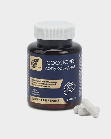 <html> <head></head> <body> <ul> <li>Концентрированный пищевой продукт </li> <li>Способствует улучшению микроциркуляции крови в сосудах глаза и наполнению сетчатки глаза кислородом и полезными веществами</li> <li>Способствует восстановлению зрения и регенерации повреждений глаза</li> </ul> <p><strong>Концентрированный пищевой продукт применяется при:</strong></p> <ul> <li>Близорукость</li> <li>Патологии сетчатки</li> <li>Сахарный диабет</li> <li>Дальнозоркость</li> <li>Катаракта</li> <li>Травмы и повреждения глаз</li> <li>Послеоперационный период</li> <li>Повышенная нагрузка на органы зрения</li> <li>При ношении очков и контактных линз</li> <li>При конъюнктивитах</li> </ul> <p><strong>Эффект от приема:</strong></p> <ul> <li>Замедление дегенеративных изменений сетчатки и хрусталика</li> <li>Укрепление мышцы глаза</li> <li>Защита глаза от влияния свободных радикалов</li> <li>Запуск процессов регенерации и обновления клеток</li> <li>Улучшение зрения</li> <li>Улучшение питания тканей глаза</li> </ul> <p>Капсулы «Natural Therapy (Натуротерапия)» со соссюреей лопуховидной способствуют улучшению микроциркуляции крови в сосудах глаза, наполнению сетчатки кислородом и питательными веществами. Запускаются процессы регенерации и зрение начинает восстанавливаться.</p> <p><strong>Соссюрея лопуховидная</strong> эффективный компонент в комплексной борьбе с глаукомой. Натуральный ингредиент участвует в восстановлении внутриглазного давления и предотвращении гибели глазного нерва.</p> <p><strong>Черника плоды и кора сосны приморской</strong>. Благодаря высокому содержанию антоцианов и кверцитина способствуют нормализации кровообращения глаза и внутриглазного давления.</p> <p><strong>Очанка</strong> успешно участвует в противостоянии возрастным изменениям зрения, а также воспалительным процессам, затрагивающими конъюнктиву и глазной нерв.</p> <p>Каротиноиды, в частности лютеин, содержащиеся в<strong> цветках бархатцев</strong>, обладают противовоспалительными свойствами, снижают риск развития катаракты, способствуют восстановлению остроты зрения.</p> <p><strong>Таурин</strong> – противокатарактный компонент, оказывает метаболическое действие. Стимулирует процессы репарации и регенерации при заболеваниях дистрофического характера и заболеваниях, сопровождающихся резким нарушением метаболизма глазных тканей.</p> <p>Пищевая ценность:</p> <p>В 1 суточной порции (2 капсулах): витамин A – 0,192 мг; витамин B1 – 0,392 мг; витамин B2 – 0,468 мг; витамин B3 – 4,68 мг; витамин B5 – 1,168 мг; витамин B6 – 0,468 мг; витамин B9 – 0,0752 мг; витамин B12 – 0,00064 мкг; витамин С – 14,032 мг; витамин D3 – 0,00096 мкг; витамин Е – 9,36 мг; холин – 0,936 мг; инозитол – 0,936 мг; бета-каротин – 0,224 мг; кальций – 2,336 мг; магний – 0,672 мг; железо – 0,936 мг; цинк – 1,4 мг; медь – 0,184 мг; марганец – 0,4 мг; йод – 0,014 мг; селен – 0,0184 мкг; хром – 0,0184 мкг; молибден – 0,014 мкг.</p> <p>Рекомендации по применению: по 1 капсуле 2 раза в день.</p> <p>Противопоказания: индивидуальная непереносимость компонентов, беременность, кормление грудью.</p> <p><strong>Пищевой продукт<br /> Не является лекарственным средством<br /> Перед применением рекомендуется проконсультироваться с врачом</strong></p> <p>Если у вас остались вопросы, вы можете написать нам в Telegram: <a href="tel:8-967-111-7811" style="color:blue; text-decoration:underline">8-967-111-7811</a>.</p> </body></html>